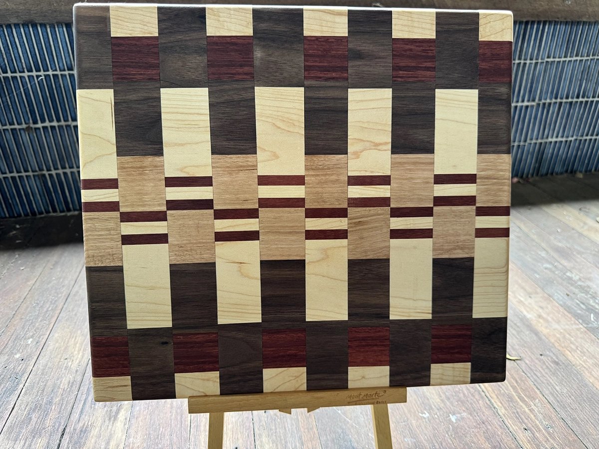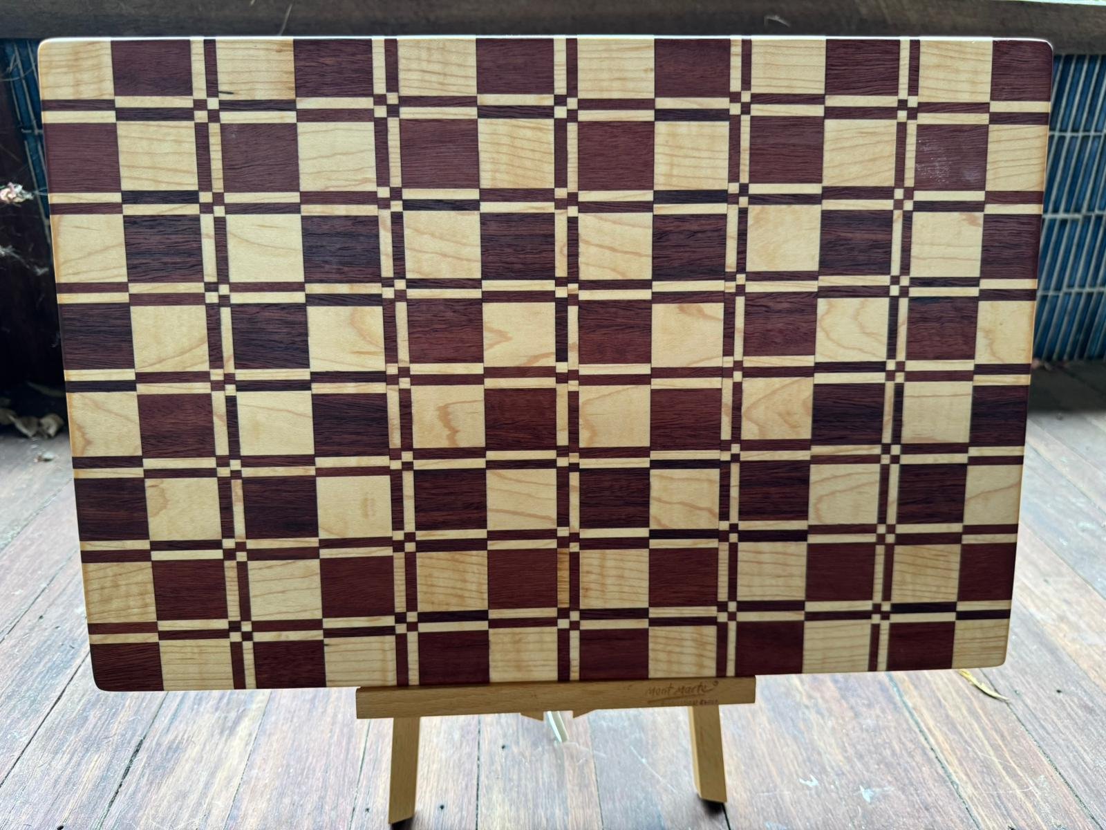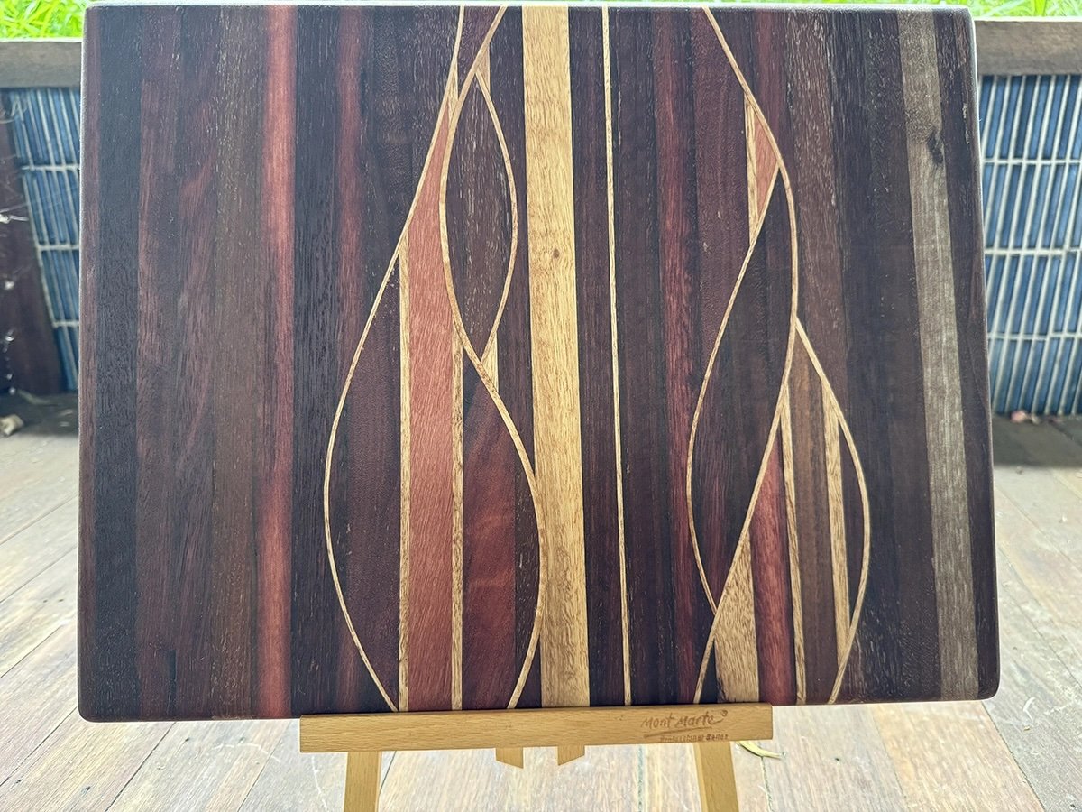If you have a colour combination or would like one of the boards featured on my website please get in touch and let me know the wood selection (dark or light), size and pattern you would like and I will email you with some price options. Let me know if you want a board with feet, if you want handles, if it is for chopping or for a display - the more detail the better.